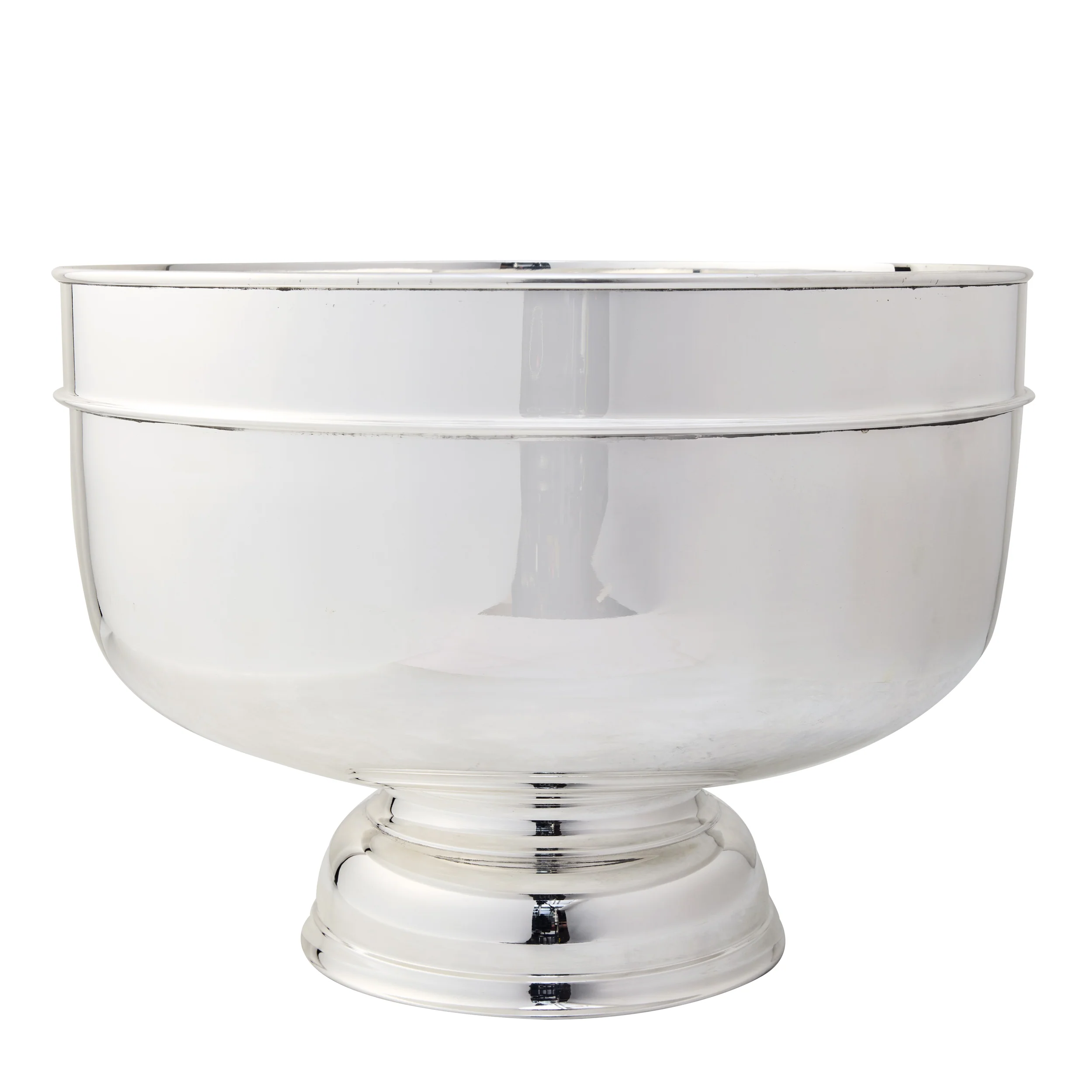 Reminiscent of Revere Style Silver, our 18 inch Vintage Footed Silverplate Grand Punch Bowl keeps Champagne and wine on ice in the most elegant way.