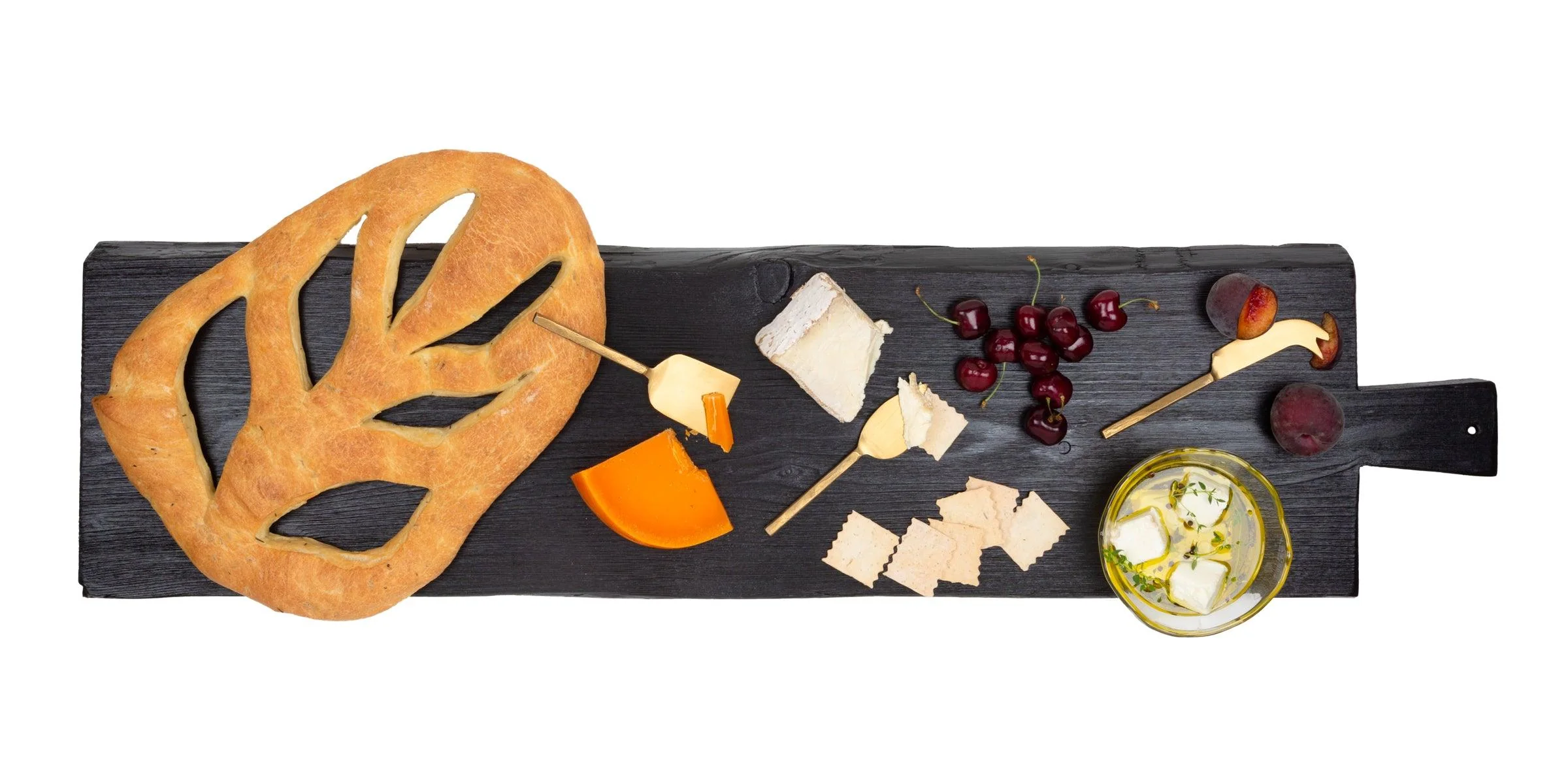 A vintage French design was the inspiration for our Brasserie Boards. Each board is crafted in Hungary from reclaimed, responsibly-sourced wood and then finished in black, bringing a modern, dramatic look to any celebration.