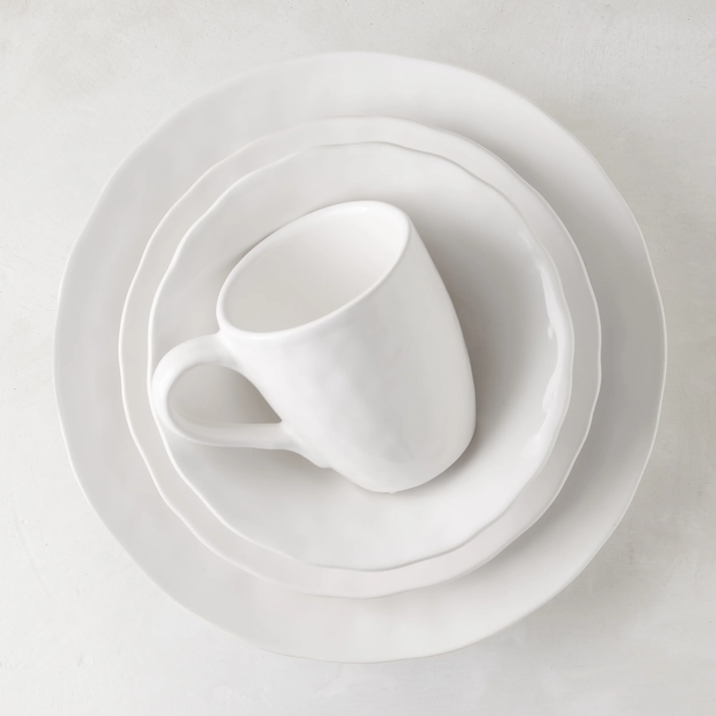 Bring organic modernity to your table with our Pebble White Ceramic Dinner Plate. Crafted in Portugal from high-quality ceramic, it offers durability for everyday use. The subtle textures, meticulous design details, and the most beautiful creamy white glaze create an elegant aesthetic that can be dressed up or down. Perfect for serving various dishes, from mains to salads, this versatile plate is sophisticated and effortlessly European.